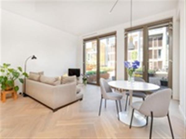 De woonkamer is opvallend licht dankzij de grote raampartijen en biedt een prettig leefklimaat. Vanuit de woonkamer heb je direct toegang tot de privé buitenruimte, gelegen in de rustige binnentuin die uitsluitend toegankelijk is voor bewoners. Een heerlijke plek om buiten te zitten in alle rust.
