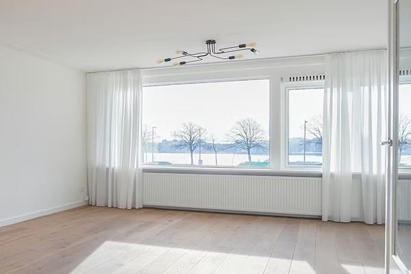 Via de verzorgde entree en het trappenhuis treft u een separaat toilet met fonteintje, waarna toegang tot de fraaie woonkamer en suite, voorzien van een lichte houten vloer en een bio-ethanol open haard, met toegang tot het zonnige balkon op het noorden met uitzicht op de binnentuin. De strakke witte keuken met inbouwapparatuur, waaronder een 4-pits gasoven, combi-oven, vaatwasser en afzuigkap, biedt voldoende opbergruimte. Het raam in de woonkamer aan de zuidzijde is eveneens voorzien van een elektrisch verstelbare zonnewering.