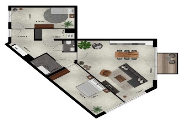 Entree, lichte woonkamer met toegang tot balkon waar je heerlijk kunt zitten, luxe open keuken voorzien van een kookplaat, afzuigkap combi magnetron, koelkast met vriesvak en vaatwasser. Er zijn twee goed formaat slaapkamers. De badkamer is voorzien van inloopdouche en dubbele wastafel. Er is een apart toilet met fontein en een berging die voorzien is van een wasmachine aansluiting.