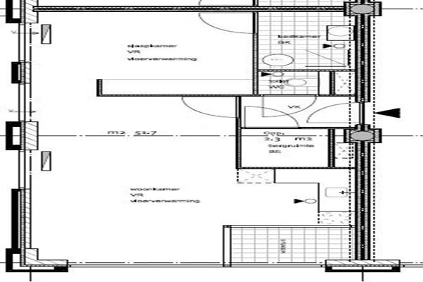 De badkamer is voorzien van een douche en wastafel. Separaat toilet en ruimte met aansluiting voor de wasapparatuur.
