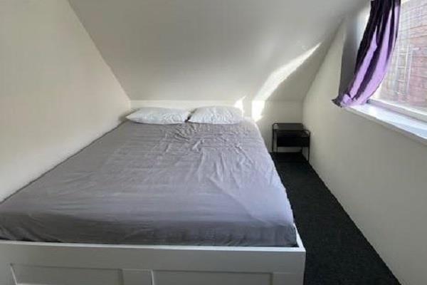 Boven zijn 2 slaapkamers (6 bij 5) en de ander is (4 bij 2) en een badkamer (wastafelmeubel, toilet en douche).