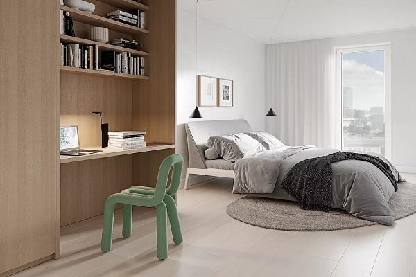 De woonkamer is licht en ruim dankzij de grote ramen, met de open keuken als centraal punt. Hier maak je makkelijk een snelle maaltijd of kook je uitgebreid voor vrienden. Vanuit de woonkamer bereik je de loggia – een knus plekje waar ’s ochtends de zon binnenvalt en waar je ’s avonds kunt ontspannen met uitzicht op de stad.