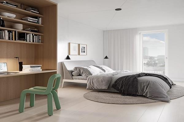 Aangrenzend vind je de loggia een knus, beschut plekje waar de ochtendzon je begroet met een warm licht. Het perfecte begin van je dag, met en de krant binnen handbereik. ’s Avonds verandert het in je eigen rustige uitkijkpunt over de stad, met een glas wijn en een vleugje avondzon.