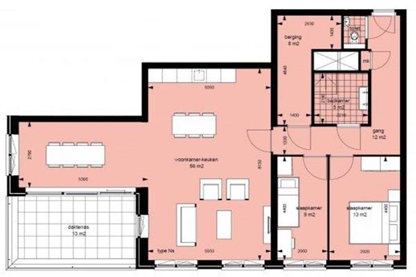 Gezamenlijke entree; lift naar 5e verdieping; voordeur. Binnenkomst in de hal. Links bevinden zich de 2 ruime slaapkamers Aan de rechterzijde de badkamer voorzien van inloopdouche, handdoekradiator en wastafelmeubel. Hiernaast apart toilet. Aan het einde van de gang bevind zich de zeer ruime woonkamer met hoge ramen, toegang tot ruim zonnig balkon en open keuken voorzien van koelkast met vriesvak, gasfornuis, afzuigkap, combi oven-magnetron en vaatwasser. Opberghok naast de badkamer met wasmachine aansluiting.