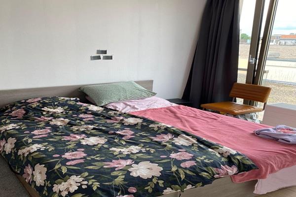 De slaapkamer bevindt zich naar de woonkamer en is ruim waardoor er met gemak een kledingkasten en 2persoons bed in past. De badkamer is voorzien van inloopdouche, toilet en wastafel.