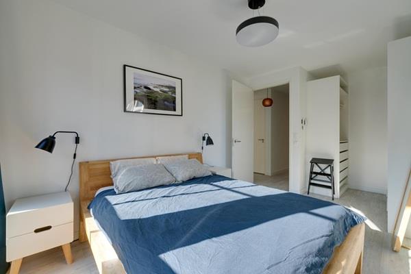 De ruime en lichte woonkamer biedt prachtig uitzicht op de toekomstige gracht en geeft toegang tot het zonnige westelijk gelegen balkon. Naast een reguliere deur beschikt het appartement over een harmonicadeur, waardoor binnen en buiten in de zomer naadloos in elkaar overlopen.