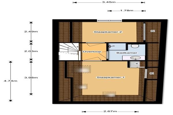 Entree vanaf de straat met trap naar de tweede verdieping. Eigen entree tot het appartement. Luxe open keuken voorzien van inbouwapparatuur, waaronder een vaatwasser, oven/magnetron, inductiekookplaat en koel-/vriescombinatie. Eettafel met stoelen. Toegang tot de woonkamer met een bank, tv en geïntegreerd luidsprekersysteem. Een trap naar de derde verdieping leidt naar twee ruime slaapkamers en een badkamer voorzien van een inloopdouche, wastafelmeubel en handdoekradiator.
