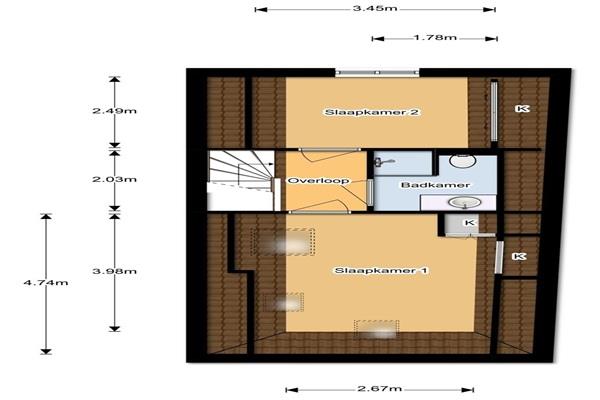 Entree vanaf de straat met trap naar de tweede verdieping. Eigen entree tot het appartement. Luxe open keuken voorzien van inbouwapparatuur, waaronder een vaatwasser, oven/magnetron, inductiekookplaat en koel-/vriescombinatie. Eettafel met stoelen. Toegang tot de woonkamer met een bank, tv en geïntegreerd luidsprekersysteem. Een trap naar de derde verdieping leidt naar twee ruime slaapkamers en een badkamer voorzien van een inloopdouche, wastafelmeubel en handdoekradiator.