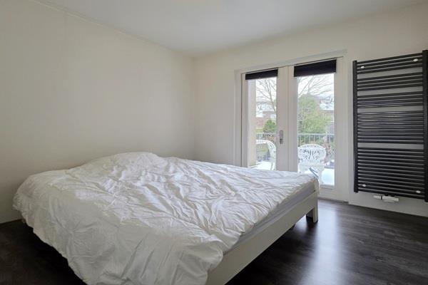 De slaapkamer is ingericht met een 2 persoons Auping bed en beschikt ook over een diepe muurkast, die als kledingkast fungeert.