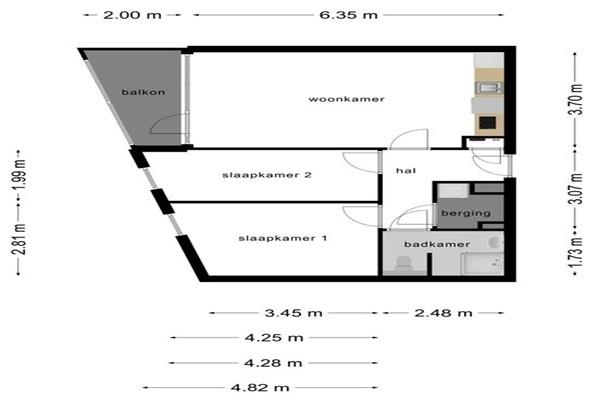 Het appartement is volledig afgewerkt. De woonkamer biedt toegang tot een eigen balkon van circa 5 m², en de open keuken is uitgerust met moderne inbouwapparatuur, waaronder een kookplaat, afzuigkap, koelkast, vriezer, vaatwasser en combi-oven. Het sanitair beschikt over een inloopdouche, wastafel en toilet. Het geheel is afgewerkt met een PVC-vloer, strakke wandafwerking in en raambekleding.