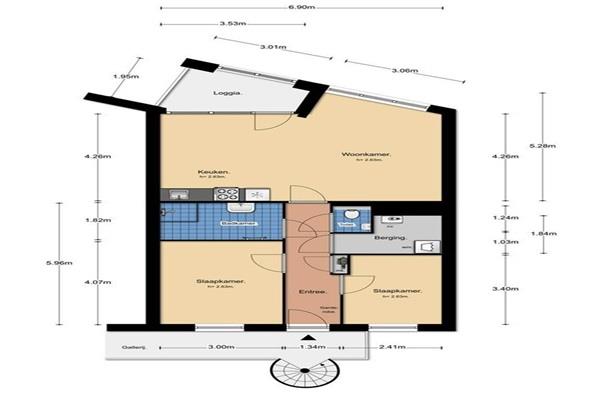 De entree met hal geeft toegang tot de meterkast, apart toilet, nette badkamer met douchecabine en wastafel. Ruime en lichte woonkamer met grote raampartijen waarbij u heerlijk vrij uitzicht heeft over het plein. Moderne open keuken voorzien van vaatwasser, koelkast, combi magnetron en gaskookplaat. Vanuit de woonkamer betreed u het zonnig gelegen balkon/loggia gelegen op het zuiden. Twee ruime slaapkamers aan de noordzijde van de woning. Aparte bergruimte met wasmachineaansluiting en CV-ketel.