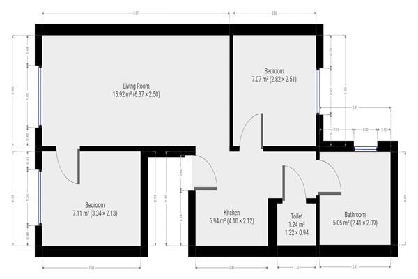 Aan de achterzijde van het appartement vind je de tweede slaapkamer, ook voorzien van een groot raam voor voldoende daglicht.