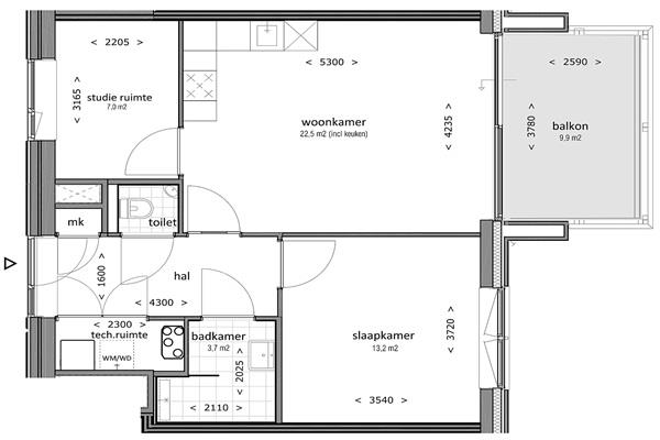 De woonkamer is ruim, licht en vormt samen met de open keuken een prettige leefruimte. Dankzij de open opzet voelt het appartement groter aan en biedt het volop mogelijkheden om het naar eigen smaak in te richten.