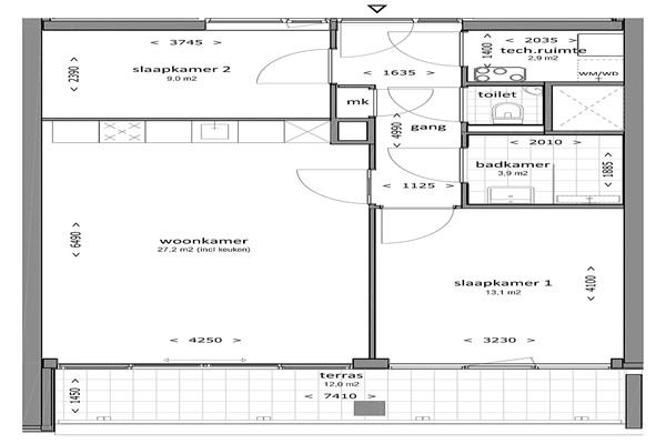 Slaapkamer 1 is circa 13,1 m² en slaapkamer 2 circa 9,0 m². De badkamer is voorzien van douche en wastafel en heeft een oppervlakte van ongeveer 3,9 m². Het toilet is separaat gesitueerd. Daarnaast is er een technische ruimte met aansluiting voor wasmachine en wasdroger. De woning heeft een centrale gang die toegang geeft tot alle vertrekken. Het appartement is gelegen in Den Haag en maakt onderdeel uit van een appartementencomplex.