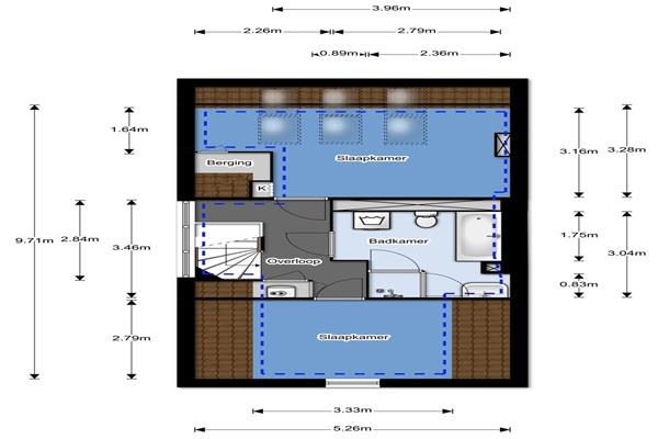 Via de overloop zijn alle ruimtes te bereiken.