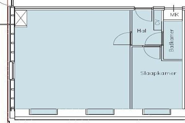 Indeling: gezamenlijk entree, trap naar 3e etage, entree appartement. Woonkamer met open keuken voorzien van een wasmachine- en gasaansluiting. Badkamer voorzien van een douche, toilet en wastafel. De slaapkamer bevindt zich naast de badkamer. Het appartement heeft een eigen CV ketel en meterkast. Ieder appartement beschikt ook over een eigen overdekte parkeerplaats op de begane grond op eigen (afgesloten) terrein.