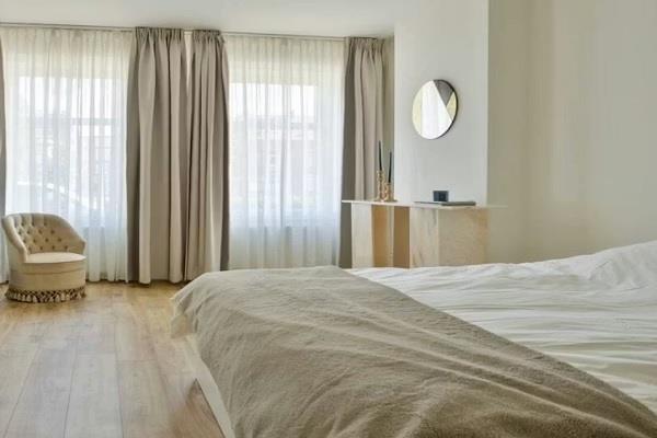 De ruime hoekkeuken is voorzien van een vaatwasser, combi-oven, inductiekookplaat en koel-/vriescombinatie. Volledig gemeubileerd.