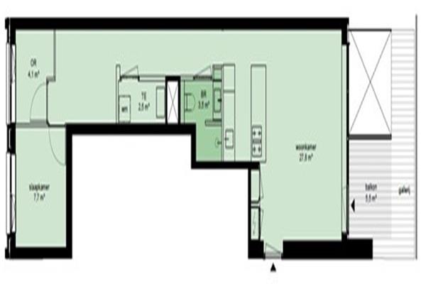 Bij binnenkomst via de mooi ontworpen houten galerij springt de ruimtelijke en lichte indeling van dit appartement direct in het oog. De woonkamer is gelegen aan de galerijzijde, is georiënteerd op het zuiden en heeft aangrenzend een fijn zonnig terras van ca. 5 m2. De strakke moderne open keuken is van het Deense design merk KVIK, en is uiteraard voorzien van luxe inbouwapparatuur. Aan de achterzijde bevinden zich de twee slaapkamers: een ruime en een kleinere. De kleine slaapkamer is ideaal als kinderslaapkamer of als werkkamer. Er past een eenpersoons bed in.