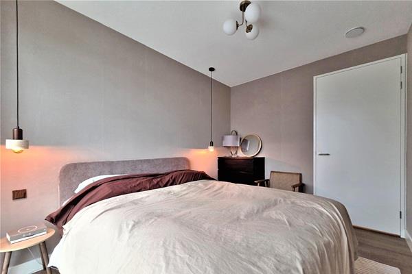 De indeling is praktisch en comfortabel, met twee slaapkamers, waaronder een ruime main bedroom. De moderne badkamer is voorzien van een inloopdouche, wastafel, toilet en handdoekradiator. Daarnaast beschikt het appartement over een separaat tweede toilet.
