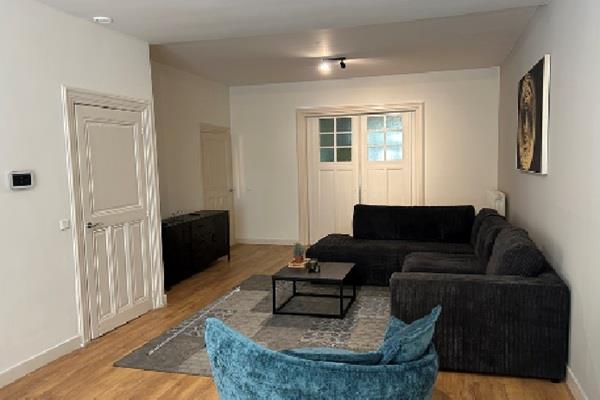 Het 3-kamer appartement is gelegen op de 1e verdieping. De entree is op de begane grond. In het gedeelde trappenhuis bevindt zich de fietsenberging. Entree appartment: enorme hal met toegang tot alle vertrekken. Aan de achterzijde is een ruime slaapkamer met balkon, zeer ruime badkamer met dubbele wastafels, ligbad en doucheruimte. Wasruimte met opstelling CV en wasmachine en droger, apart toilet. De 2e slaapkamer is bijzonder ruim en heeft teven toegang tot een terras aan de achterzijde. Living aan de voorzijde met toegang tot de half open keuken voorzien van alle benodigde apparatuur.