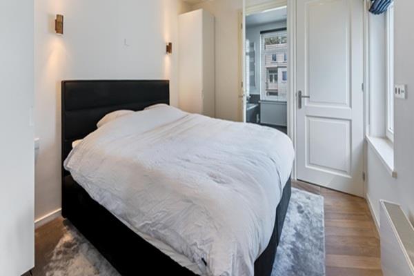 De hoofdslaapkamer, gelegen aan de rustige achterzijde van het appartement, is aangenaam ruim en beschikt over een ensuite badkamer met een ligbad, dubbele wastafel en een tweede toilet. Daarnaast is er ook nog een apart gastentoilet voor extra gemak.