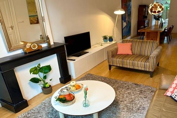 Indeling: Entree: aan de voorzijde bevindt zich de woonkamer. De halfopen keuken is voorzien van alle inbouwapparatuur met openslaande deuren naar de tuin. De badkamer is voorzien van een regendouche, wastafel en toilet. Aan de achterzijde bevindt zich de slaapkamer. Geweldig comfortabel appartement op een zeer mooie locatie!