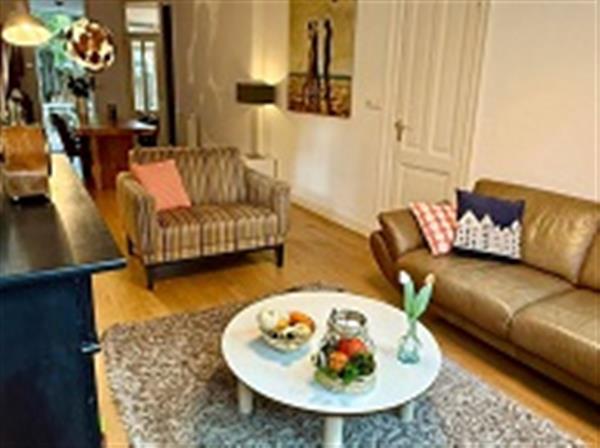 Entree: aan de voorzijde bevindt zich de woonkamer. De half open keuken is voorzien van alle inbouwapparatuur met openslaande deuren naar de tuin. De badkamer is voorzien van een regendouche, wastafel en toilet. Aan de achterzijde bevindt zich de slaapkamer. Geweldig comfortabel appartement op een zeer mooie locatie!