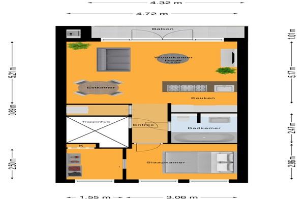 Via het gezamenlijke trappenhuis bereikt u de entree van het appartement op de derde verdieping. De lichte woonkamer met open keuken is aan de achterzijde gelegen en biedt toegang tot het balkon. De moderne keuken is voorzien van diverse inbouwapparatuur.