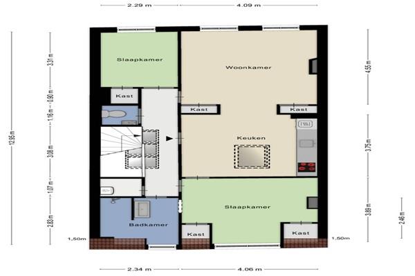 Indeling: Gezamelijke entree op de begane grond, via het trappenhuis bereikt u de etages. Entree appartement. De riante woonkamer met veel lichtinval en hoge plafonds. De slaapkamers zijn ruim en licht.