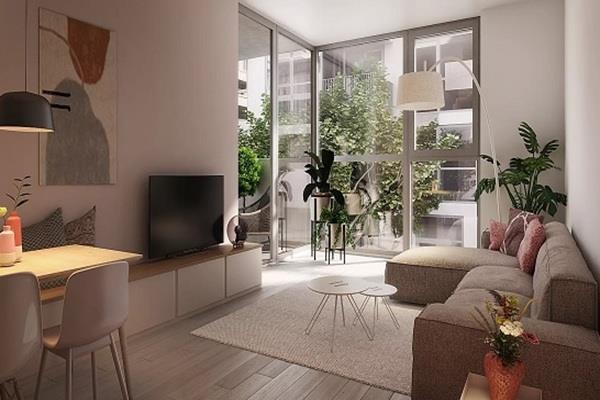 De ruime woonkamer met open keuken voelt licht en luchtig aan dankzij de grote ramen. Vanuit de woonkamer stap je zo het balkon op, een heerlijke plek om aan het eind van de dag te genieten van de ondergaande zon.