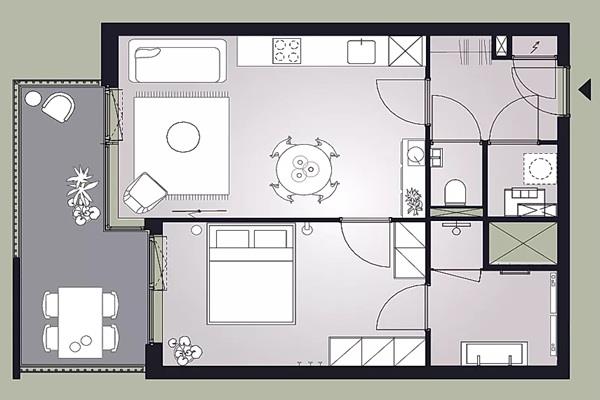 Het balkon is gelegen op het westen en biedt een fijne plek om aan het einde van de dag buiten te zitten en van de avondzon te genieten.
