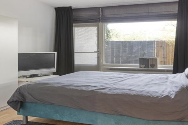 Via de tussenhal zijn de slaapkamer met praktische muurkast en toegang tot het terras, het separate toilet en de badkamer bereikbaar. De badkamer is uitgerust met een ligbad, wastafel en aansluitingen voor witgoedapparatuur.