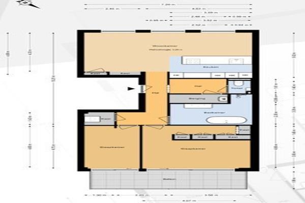 Via hal heeft u toegang tot alle vertrekken in het appartement. De ruime woonkamer met open keuken. Door de 3 grote raampartijen heeft u de gehele dag veel lichtinval in de woonkamer.