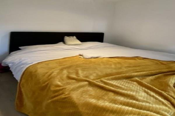 Via de woonkamer kun je de slaapkamer betreden. De slaapkamer is voorzien van een tweepersoonsbed.