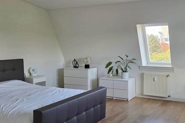 Entree appartement, badkamer met douche, wastafel, toilet (hang) en extra fonteintje, royale lichte woonkamer, open keuken met inbouwapparatuur waaronder een vaatwasser, inductiekookplaat, afzuigkap en een koelkast, grote slaapkamer