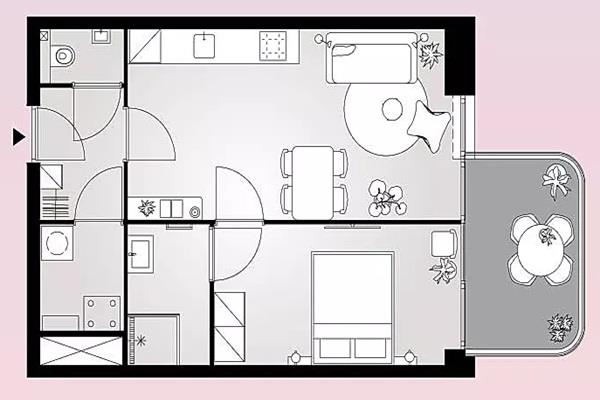 De woonkamer is licht en prettig om in te verblijven. Vanuit hier heb je toegang tot het balkon, een fijne plek om even rustig te zitten.