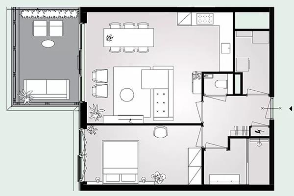 Bij binnenkomst word je verwelkomd in de lichte woonkamer met open keuken. De moderne, luxe witte keuken is volledig uitgerust met hoogwaardige inbouwapparatuur, waaronder een inductiekookplaat, afzuigkap, vaatwasser, combimagnetron en koelkast. Vanuit de woonkamer heb je toegang tot het balkon, een heerlijke plek om te ontspannen.
