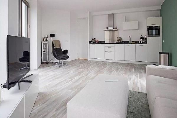 Het balkon biedt uitzicht op de rustige binnenzijde van het gebouw en is groot genoeg voor een klein zitje. Ideaal om in alle rust te genieten van het buitenleven midden in de stad.