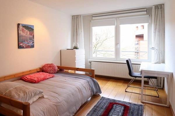 2 slaapkamers (resp. 18,5m² en 10 m²) waarvan de grootste dient als 'masterbedroom' met een 2persoonsbed en de kleinere kamer fungeert als logeerkamer dan wel werkplek.
