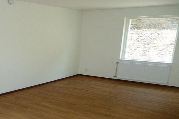 voorzijde, open keuken voorzien van gasfornuis en afzuigkap, badkamer met douchecabine, wastafel, toilet en wasmachine aansluiting, aparte slaapkamer met raam in de steeg en deur naar gemeenschappelijke binnenplaats.