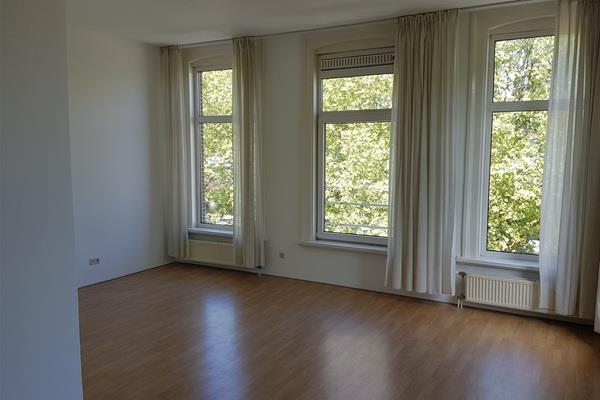 Entree, trap naar tweede verdieping, ruime zitkamer met prachtig uitzicht over het water van de Stadhouderskade, nieuwe open keuken met inbouwapparatuur, slaapkamer met toegang tot zonnig balkon, ruimte met wasmachine en droger, badkamer met bad, inloop douche, dubbele wastafel, bidet en toilet.