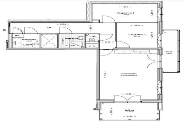De woonkamer is ruim en licht en vormt samen met het eetgedeelte het hart van de woning. Dankzij de open indeling is er volop ruimte voor een comfortabele zithoek en een grote eettafel. Vanuit de woonkamer heb je toegang tot het balkon van 12 m², gelegen op het noordoosten, én tot de serre van 8 m². Deze extra ruimtes maken het appartement bijzonder en zorgen ervoor dat je het hele jaar door van buiten kunt genieten.