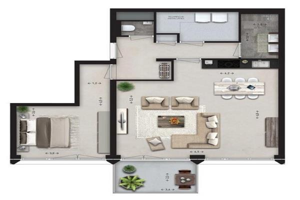 Bij binnenkomst kom je in een ruime entreehal met garderobenis, toilet en toegang tot een handige berging, die voorzien is van een warmtepomp en een waterontharder. De luxe badkamer heeft een inloopdouche en dubbele wastafel. De slaapkamer van ongeveer 16m² heeft een Frans balkon.