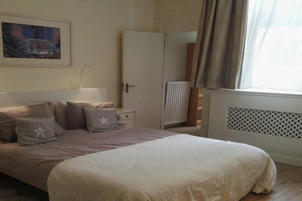 Entree in het appartement. Netjes ingerichte L-vormige woonkamer met open keuken voorzien van alle inbouwapparatuur, moderne badkamer met douche en toilet. Aparte slaapkamer met grote ramen. Ruime en zonnige tuin aan de achterzijde van het appartement.