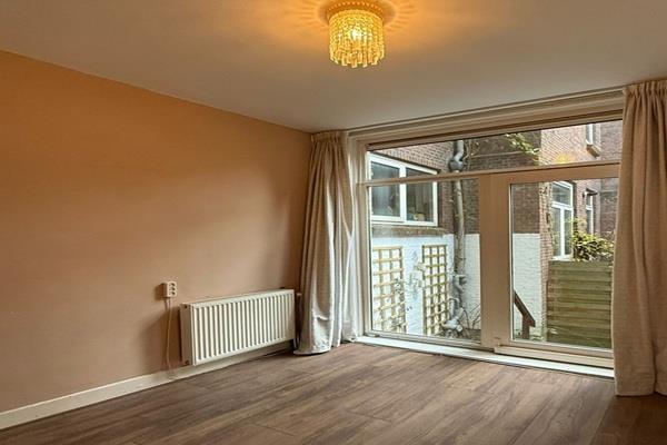 De woonkamer is ruim en licht, met voldoende ruimte voor een zitgedeelte en een eethoek. Het is een fijne plek om te ontspannen of gasten te ontvangen.