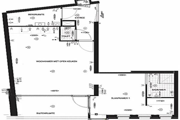 Het appartement is voorzien van één slaapkamer en een badkamer met douche en wastafel. Daarnaast is er een separaat toilet aanwezig. De indeling is functioneel opgezet met een duidelijke scheiding tussen woon- en slaapgedeelte