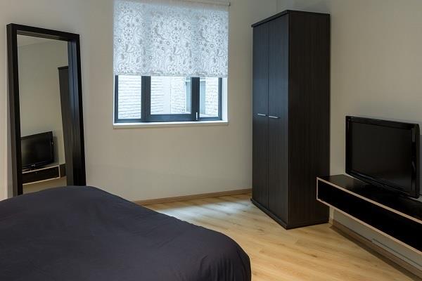 De woonkamer is v.v. laminaat en gelegen aan de voorzijde, vele raampartijen met uitzicht over het station. De half open keuken is v.v. inbouw apparatuur. Separate betegelde toilet met wastafel.