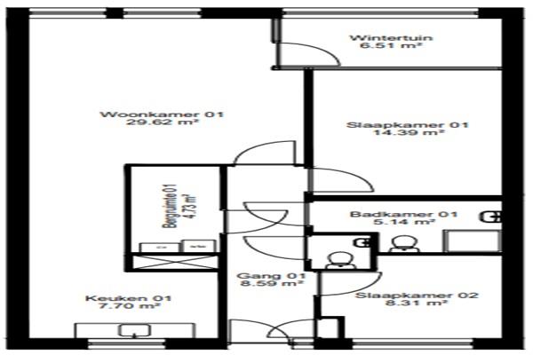 Het appartement beschikt over 2 slaapkamers en een ruime woonkamer. In het souterrain bevindt zich de afgesloten parkeergarage, waarbij ieder appartement een eigen parkeerplaats huurt. Ook bevindt zich in het souterrain nog een aparte bergruimte.