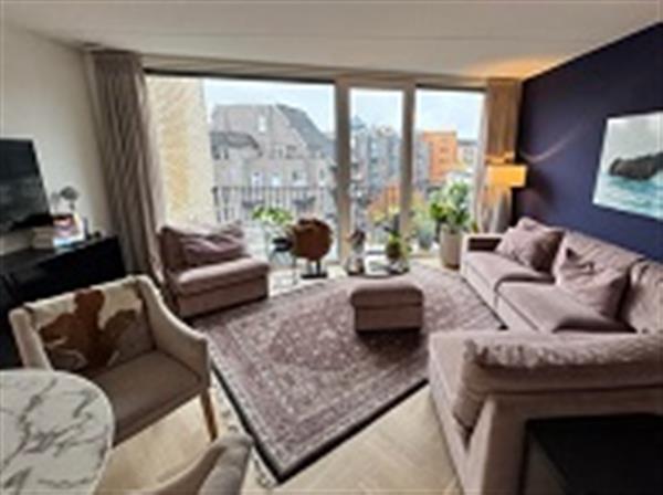 Bij binnenkomst via de hal stap je in de lichte en ruime woonkamer. Deze biedt toegang tot het royale balkon en beschikt over een moderne open keuken met diverse inbouwapparatuur.