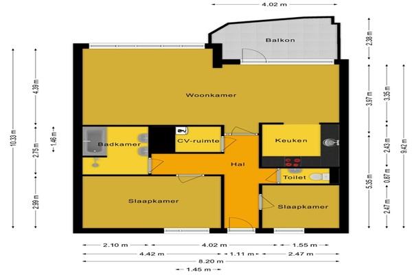 Vanuit de voordeur komt u binnen in de ruime hal welke toegang geeft tot alle vertrekken: de royale woonkamer, moderne open keuken, twee slaapkamers, badkamer en apart toilet. Het gehele appartement is voorzien van laminaatvloer.